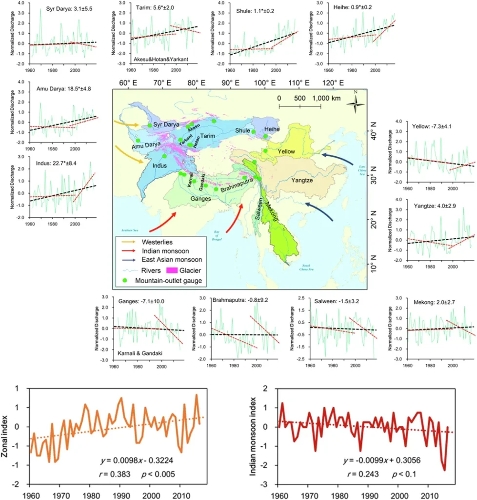 The study found that over the past half-century, rivers like the Indus, Amu Darya, Syr Darya, Tarim, Heihe, and Shule—all influenced by westerly winds—have seen significant increases in runoff. In contrast, monsoon-dominated rivers such as the Ganges, Brahmaputra, Mekong, and Salween have experienced insignificant declines. These changes are largely driven by the enhancement of westerlies and the weakening of the Indian summer monsoon.